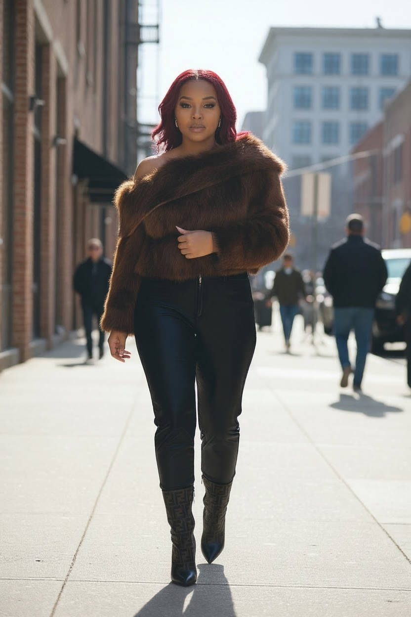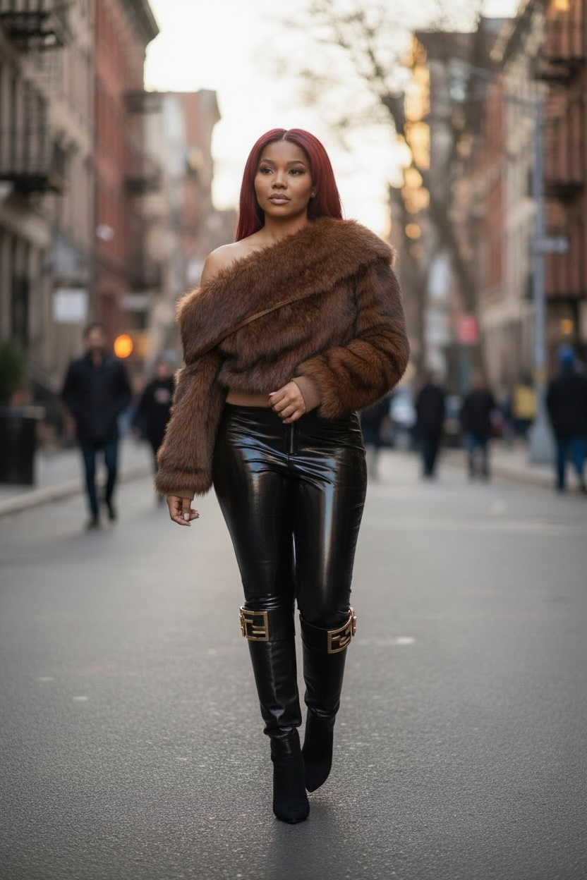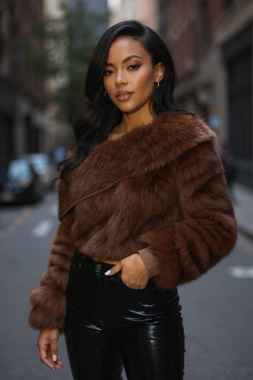 Wrap yourself in luxe sophistication with this statement faux fur top. Designed in a rich chestnut brown, the plush texture creates instant glam while keeping it versatile enough for day-to-night dressing. The off-shoulder silhouette adds a sultry touch, while the sleek side zipper closure ensures a seamless fit that hugs your frame.