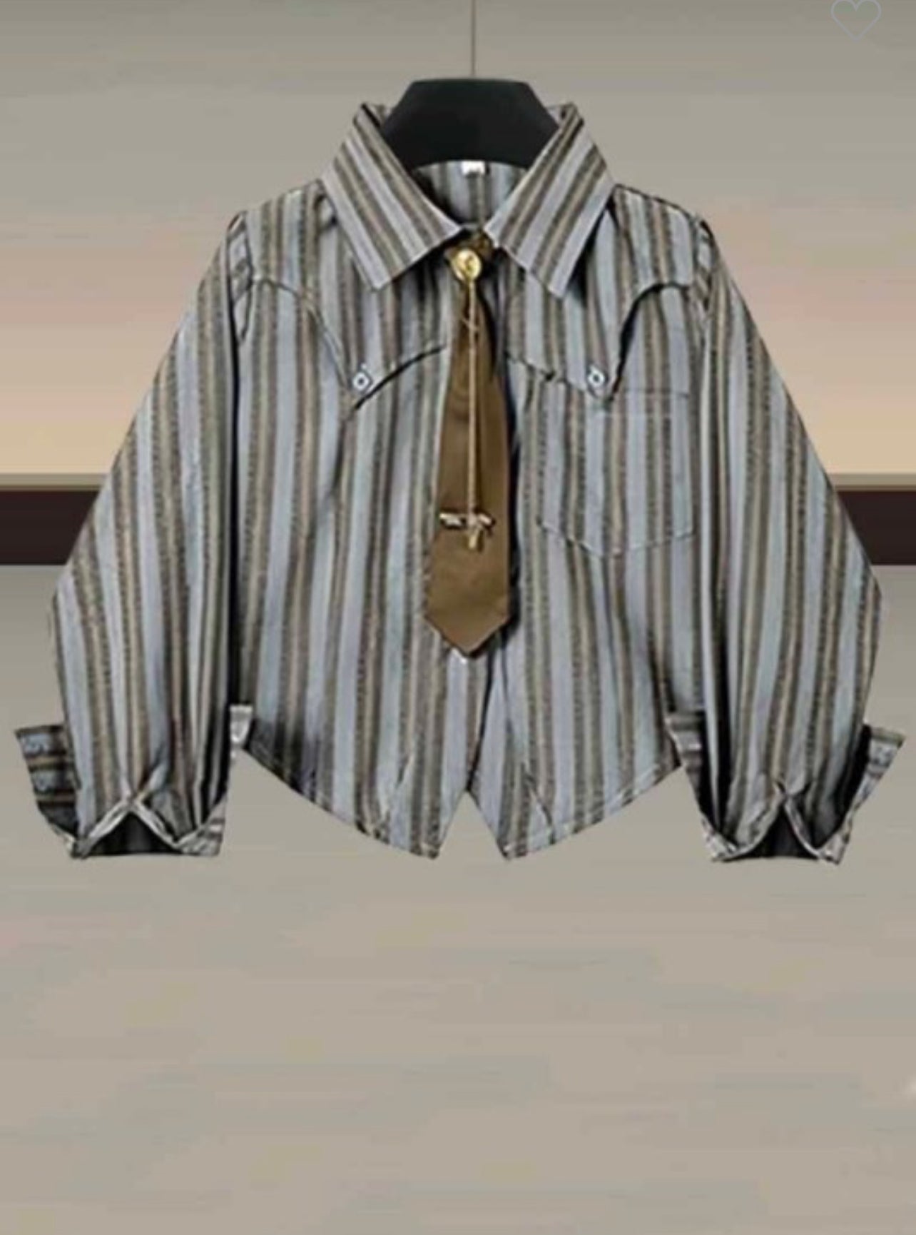 "Take on new fashion adventures with our Megan Good Top! This bold and chic top features a striking stripe design, complete with a stylish tie and small symbol for added flair. With its long sleeves and unique brown color detail, this top is the perfect statement piece. Pair it with your favorite bottoms for a daring and eye-catching look!"